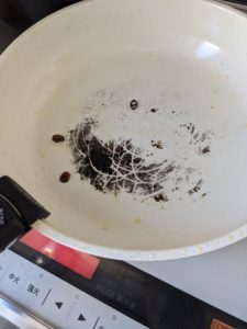結果、ペペロンチーノを作ったとは思えないフライパンのあとに。。