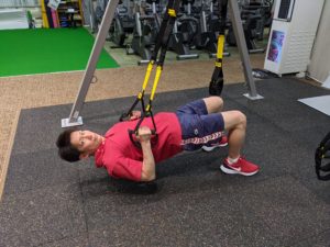 トレーニング方法はTRX®横の壁に貼っておりますし、火曜の午前中など私もジムをうろうろしておりますので聞いてくださいね!