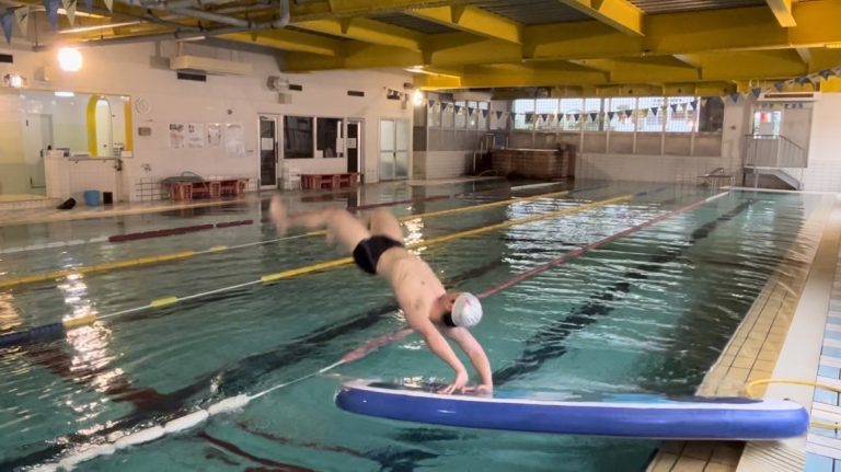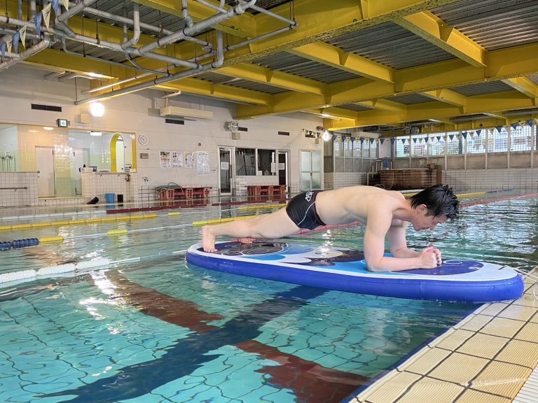 陸でやるより不安定な状態なので、落ちないようにぐっと耐えることが多く、腹筋を使う場面が沢山でてきます。でもやっているときは意外ときつくなく、楽しいのであっという間に終わっちゃうんです。