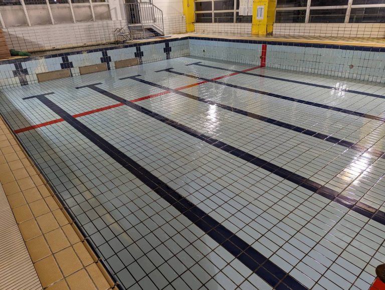 昨日の営業後すぐにプールの水を抜いて今もたくさんの工事業者さんが来てくださっています