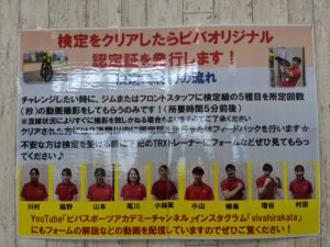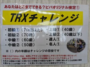 そしてビバは段階的にクリアしていただくために、初級・中級などとメニューを分けて挑戦していくTRXチャレンジを実施しています!