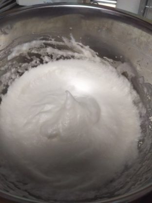 分けたら白身をひたすら泡だて器で泡立てる!!