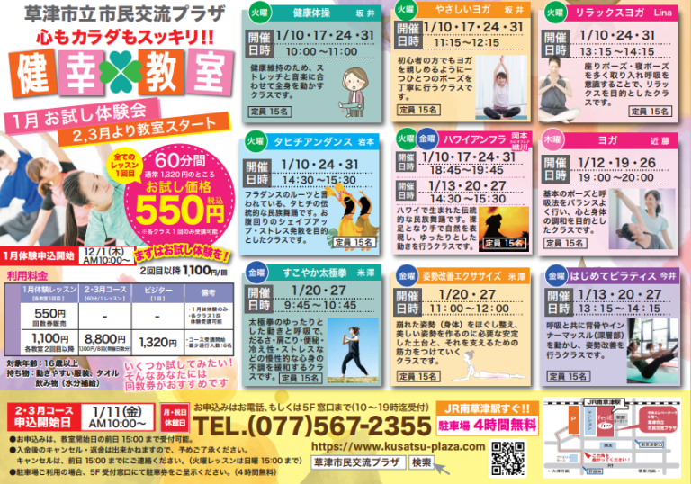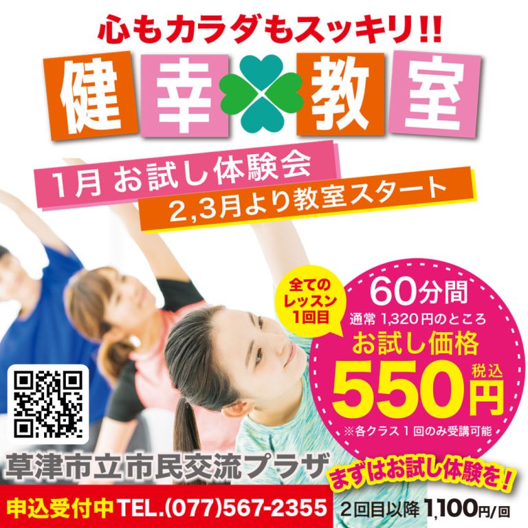 草津市立市民交流プラザでは1月10日より「心もカラダもスッキリ!!健幸教室」を開催いたします。