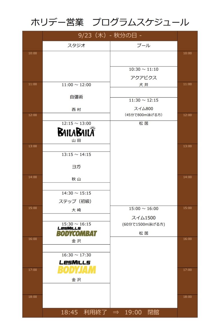 9月20日(月)23日(木) 祝日プログラムについて2021.09.04