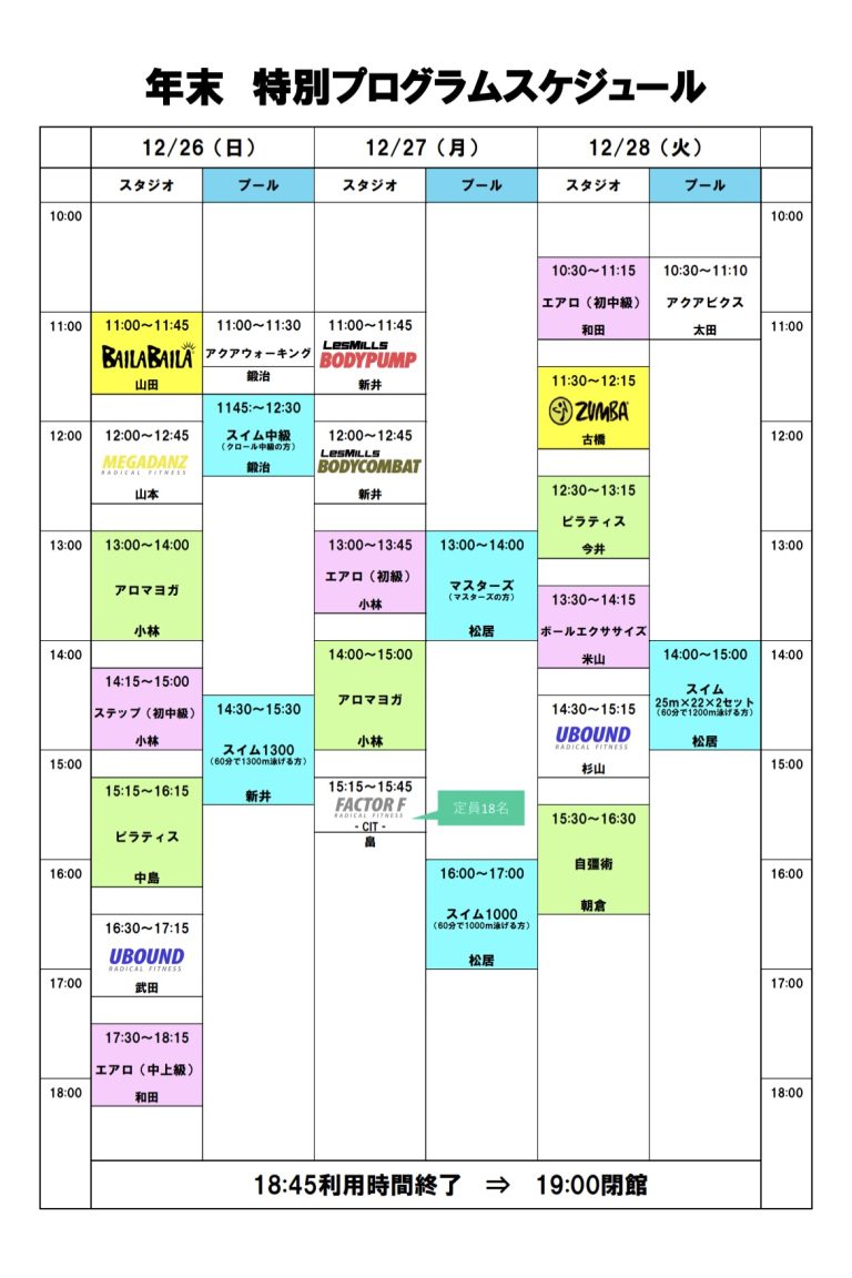 また12月26日(日)~12月28日(火)までは、特別営業日で10:00~19:00までとなり、どのコースの方でもご利用いただけます。