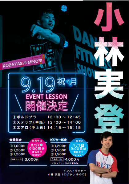 9.19(月)祝日イベントレッスン開催決定!2022.08.18