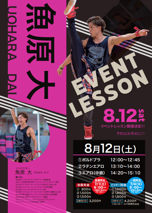 8/12(土)イベントレッスン開催決定!2023.06.04