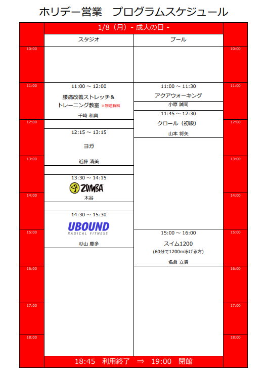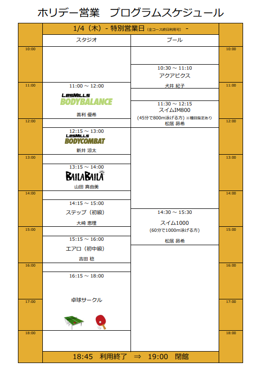1月4日(木)は特別営業日となり、全コースの方が利用していただけます。