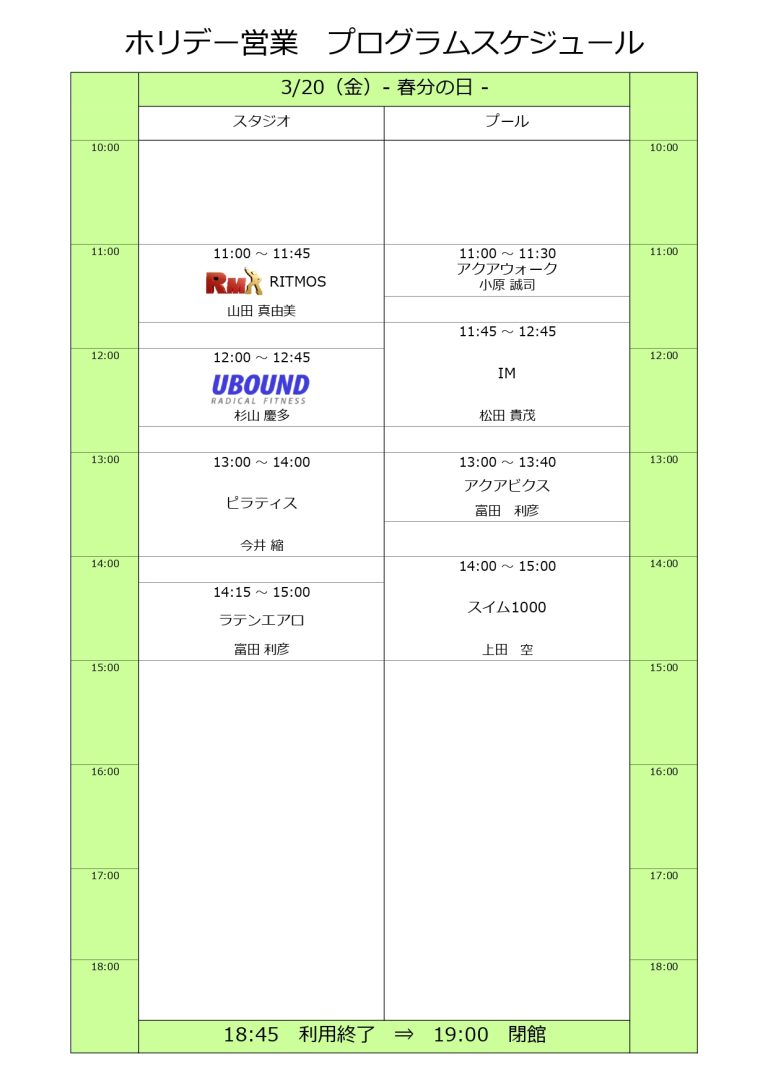 3月20日(金)祝日プログラムが完成しましたので発表いたします。