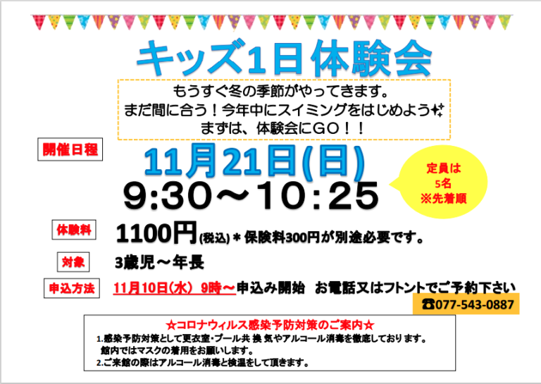 11/21(日)キッズ1日体験会開催決定!!