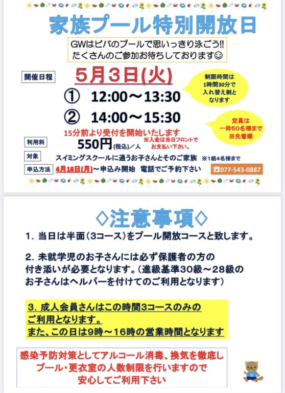 家族プール特別開放日🎏5月3日