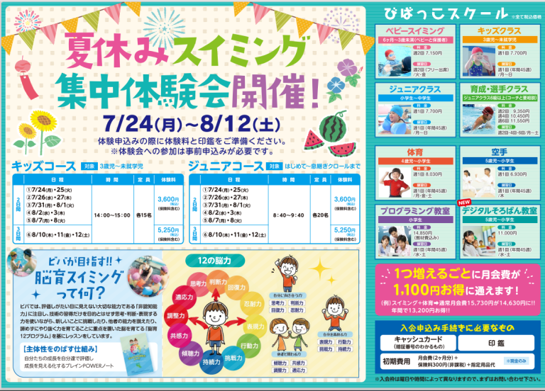 今年も『夏休み集中体験会』を開催いたします👏