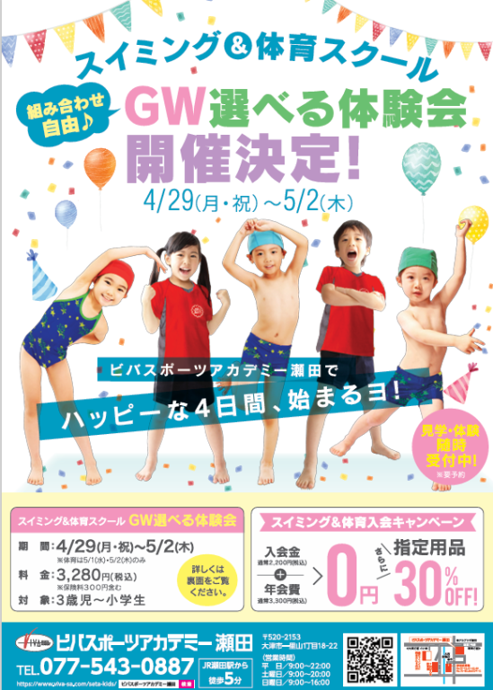 ビバスポーツアカデミー瀬田ではGWにスクール体験会を行います👏
