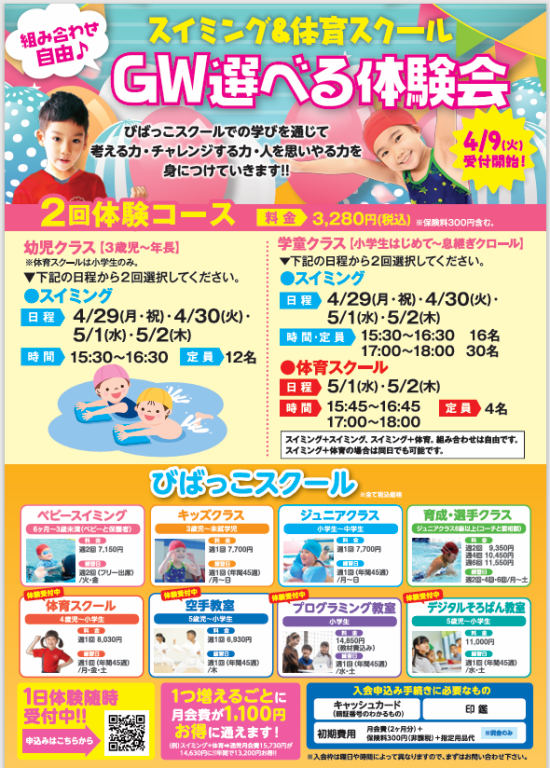 スイミング&体育スクールGW選べる体験会開催決定!!