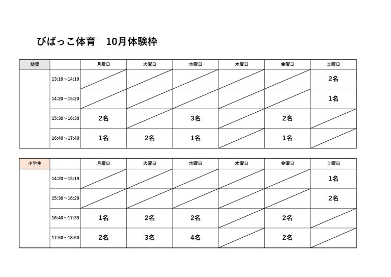 びばっこ体育『10月体験枠』と『対象年齢変更』について