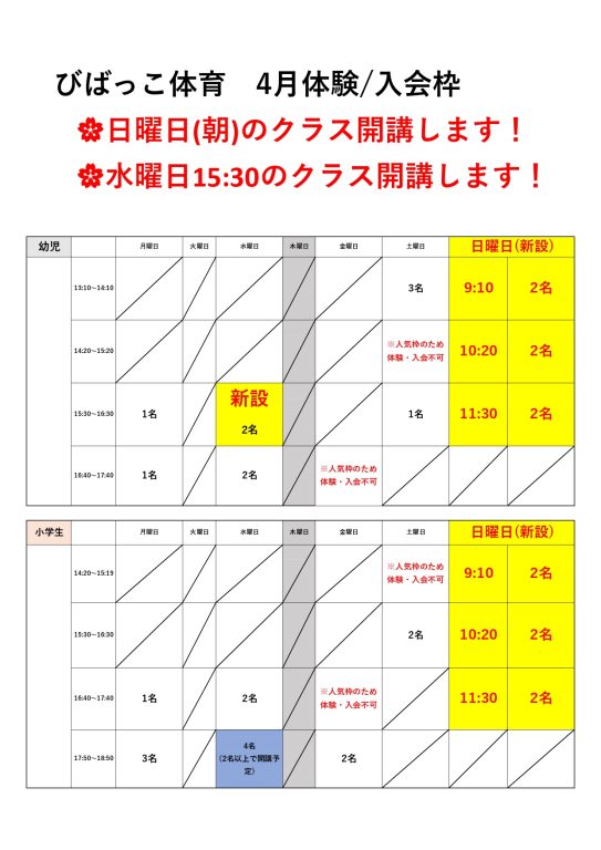 日曜日・水曜日ともに現在、少人数で受講いただけます♪