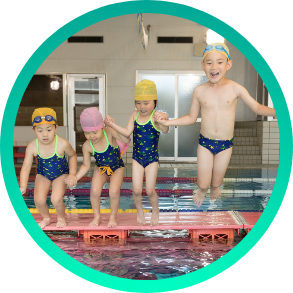 水泳の基本技術をあそび化することで楽しみながら自然と基礎が身に付きます。