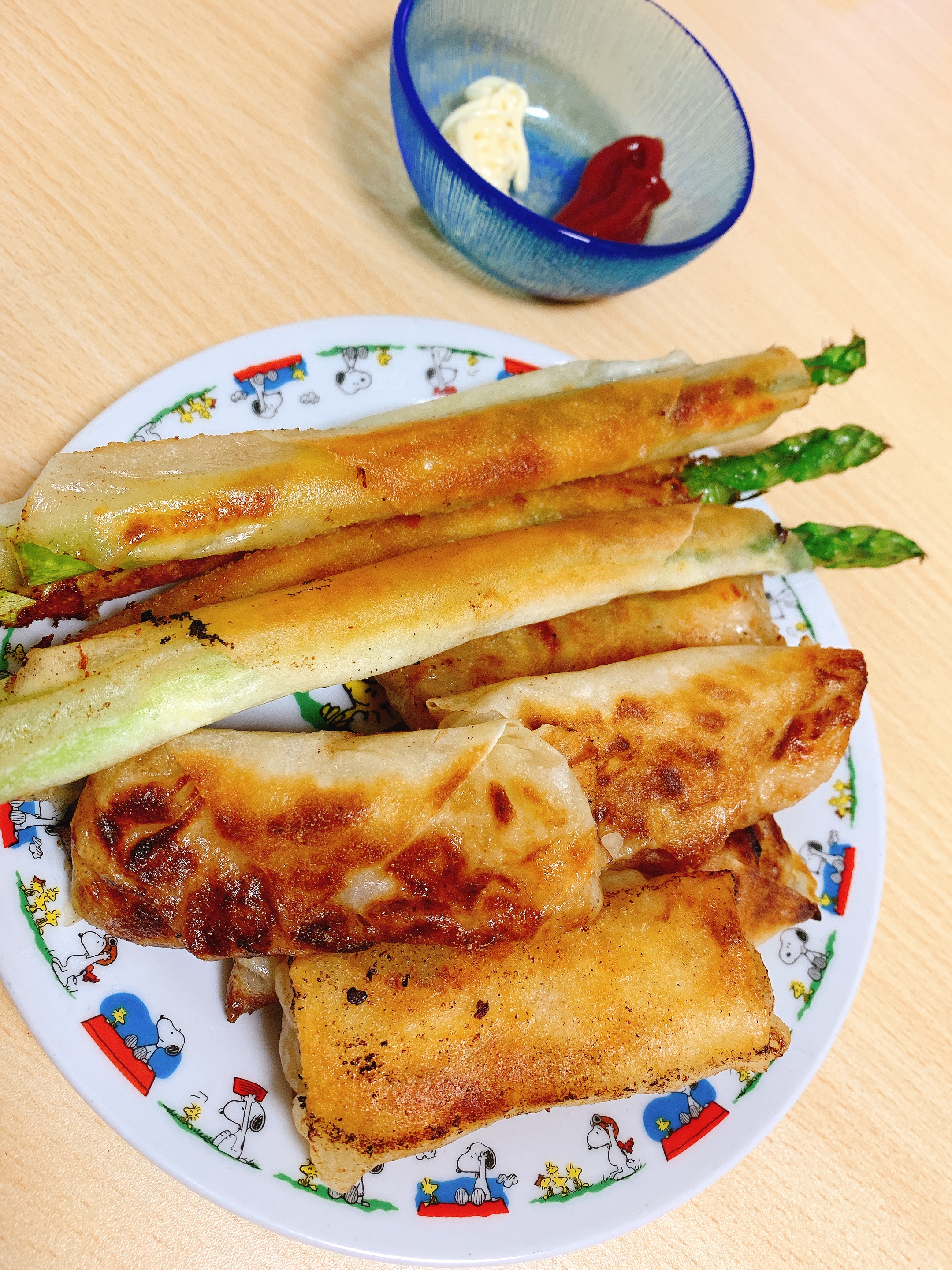 奥の方はアスパラ1本ととろけるスライスチーズを巻きました。