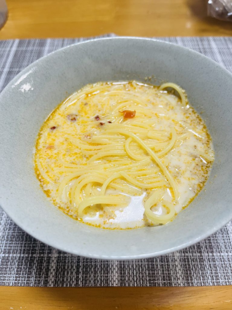 ここ1.2週間ほどすごく辛いものを欲しており、特に『麻辣湯』というものが食べたくて食べたくて仕方なく、とうもろこし麺を買って、実家に着くなり母親にスープを作ってもらい豆乳ベースの辛いものを食べました💪🏻 すぐに作ってくれる母親に感謝です。