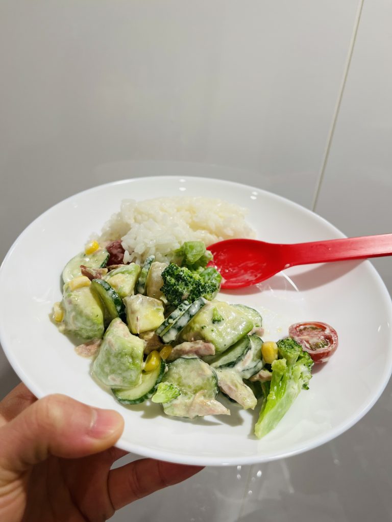 アボカド1つを使ったサラダをうぇ~~~いと食べたり